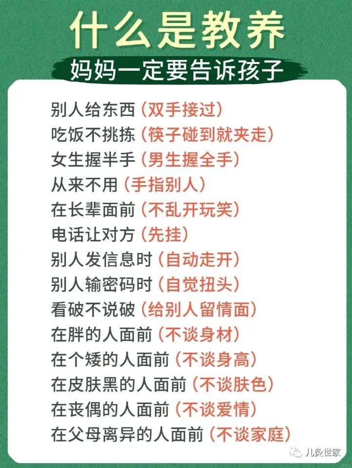 一定要告诉孩子的10个基本修养,家长们收藏!