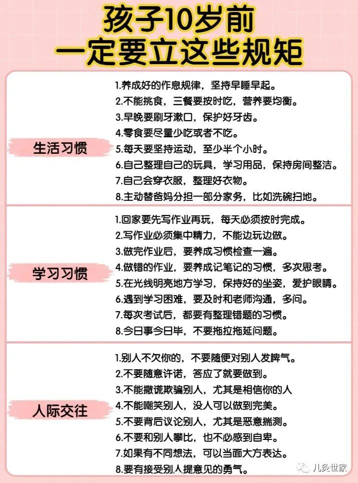 孩子10岁前立好这些规矩,越来越优秀!
